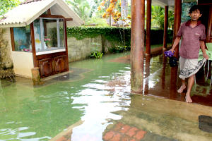| Land unter beim EDC – am 13.Mai 2018 Im Mai regnet es bei uns in Aluthgama immer etwas mehr und heftiger als sonst. Diesmal hatten wir die ganze Nacht heftige Regenschauer, so dass wir morgens durch das stehende Wasser waten mussten, um in das Büro zu kommen. Bei unserer neuen Batik-Arbeitsstätte war das Wasser sogar bis zu einem Meter hoch. Glück im Unwetter – am Abend war das meisten Wasser abgelaufen und es gab keine neuen heftigen Schauer danach | ![]() |