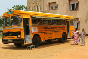 | Eröffnung der mobilen Näh-Einheit „Sannaliya“ am 13. Juni 2018 Da die Frauen auf dem Land in vielen Fällen benachteiligt sind, soll dies mit Hilfe der mobilen Ausbildungseinheit geändert werden. Aus diesem Anlass wurde der Bus am Tag des Forums offiziell eröffnet. Alle beteiligten waren sehr positiv überrascht und sehen darin eine grosses Potential für Entwicklungsprojekte auf dem Land. Der Bus wurde „Sannaliya“, was so "Nähfrau" bedeutet, getauft. Das Projekt ist eine Förderung der Stiftung Nord-Süd-Brücken, BMZ und LOTUS international e.V. | ![]() |