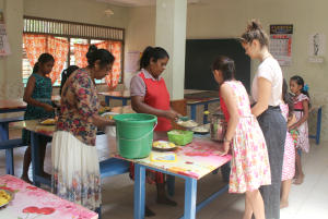 Mittagessen für Kinder im Kinderheim – Angang April In Sri Lanka ist eigentlich weniger typisch an seinem Geburtstag beschenkt zu werden und eine Feier zu machen, sondern ehr an diesem Tag zum Tempel zu gehen oder etwas für andere zu tun oder. Vor allem Menschen, die weniger Glück im Leben hatten als man selbst. Als Geburtstagswunsch von Anisha kochten wir für ein Mädchenwaisenhaus in Induruwa. Gemeinsam mit Freunden und den Volunteers brachten und servierten wir das Essen für die Mädchen. Dann gab es für jede auch noch ein kleines Geschenk. | ![]() |