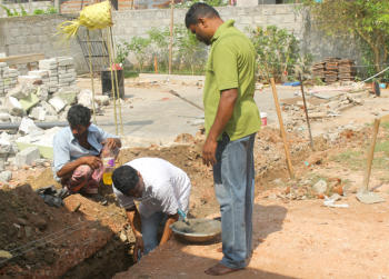 | Grundsteinlegung für die neue Weberei in Aluthgama, Sri Lanka - 25. Januar 2019 Am 25.01.2019 begann mit der traditionellen Grundsteinlegung die Bauarbeiten für eine Weberei als Ausbildungs- und Produktionsstätte in Aluthgama, Sri Lanka. In etwa 2 Monaten soll der Bau fertig sein und die Ausbildungsphase beginnen. Das Projekt wird von der Stiftung Nord-Süd-Brücken und dem BMZ finanziert, in Zusammenarbeit it unserer Partnerorganisation Nature Volunteers Association in Sri Lanka. | ![]() |