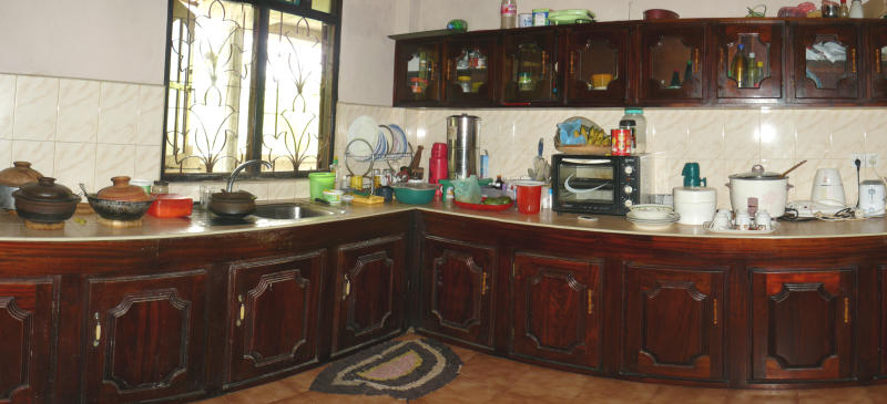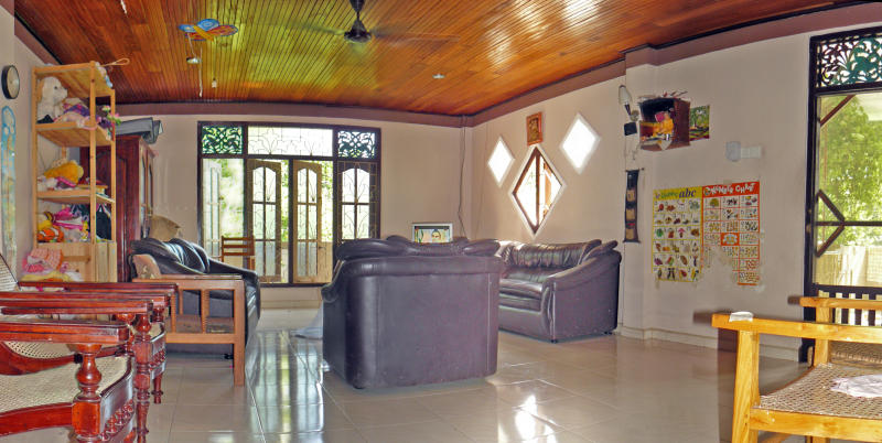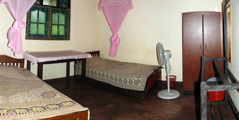 Hier stehen insgesamt 3 Zimmer, Wohnzimmer, Küche, Essecke und ein grosses Badezimmer zur Verfügung. Die Zimmer für die Helfer haben je zwei Einzelbetten, Tisch, Stuhl, Schrank, Wäscheständer, etc.