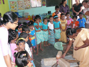In Sri Lanka wird traditionell das Neujahr am 13./14. April gefeiert. Zu diesem Anlass gibt es in den verschiedenen Einrichtungen und vor allem für die Kinder besondere Festlichkeiten und Spiele. So auch im Kindergarten am nahegelegenen Tempel. Nach einigen offiziellen Worten und typischem Neujahrsgebäck ging es für die Kinder raus zu den Wettbewerben wie Wettessen, Ballonwettpusten oder Seilziehen. Unsere volunteers waren in festlicher Bekleidung auch mit dabei.