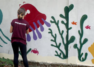 | Gestaltung Kindergarten – Anfang Oktober Wir wollen einen schönen Kindergarten für die Kinder. Nach diesem Motto haben unsere fleissigen Volontäre ihre Phantasie eingesetzt und die Außenwände des Kindergartens Pipena Kekulu bemalt. Nun ist es schon von weitem zu erkennen und die Kinder freuen sich über die schönen Zeichnungen. | ![]() |