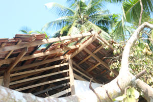 | Sturmschäden nach Zyklon – 29. November 2017 Am 29. November fegte ein Zyklon über weite Teile des Landes und hinterließ viele Schäden. Das EDC selbst hatte Glück, jedoch wurden der Kindergarten „Pipena Kekulu“ und die Bürsten- produktionsstätte in Pinhena von umgefallenen Bäumen getroffen. Diese konnten inzwischen schon von den Dächern entfernt werden, jedoch sind nun dringende Reparaturen der Schäden notwendig. Hoffen wir nur, dass es bis dahin nicht zu heftigen Regenfällen kommt, da dies die Situation noch verschlimmern würde. | ![]() |